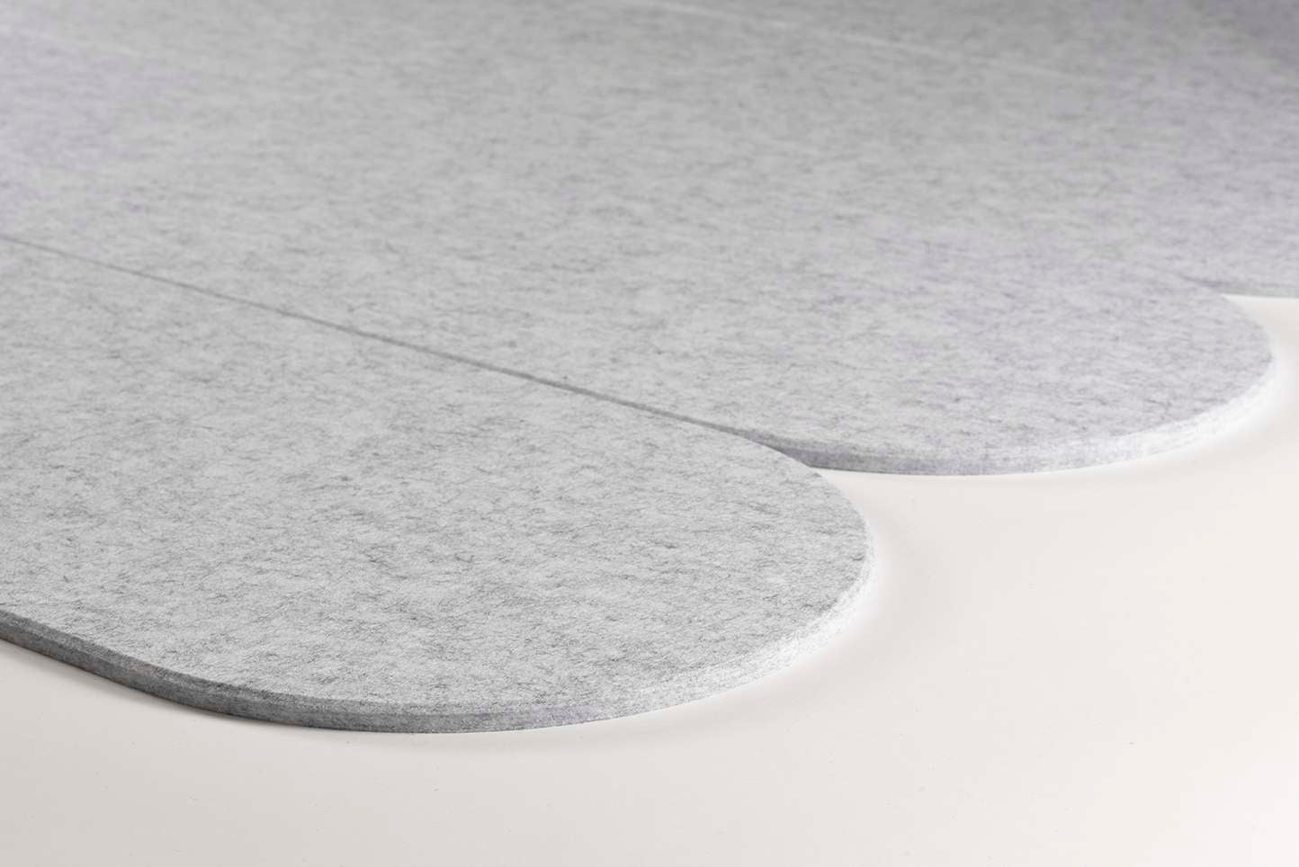 Het 9 mm dikke PET-vilt is deels gemaakt van gerecyclede PET-flessen, waardoor het product een duurzaam karakter heeft. De panelen hebben los van elkaar ieder een formaat van 30x120 cm. De set van 6 panelen samen hebben een totaal oppervlak van ongeveer 1,9 vierkante meter.