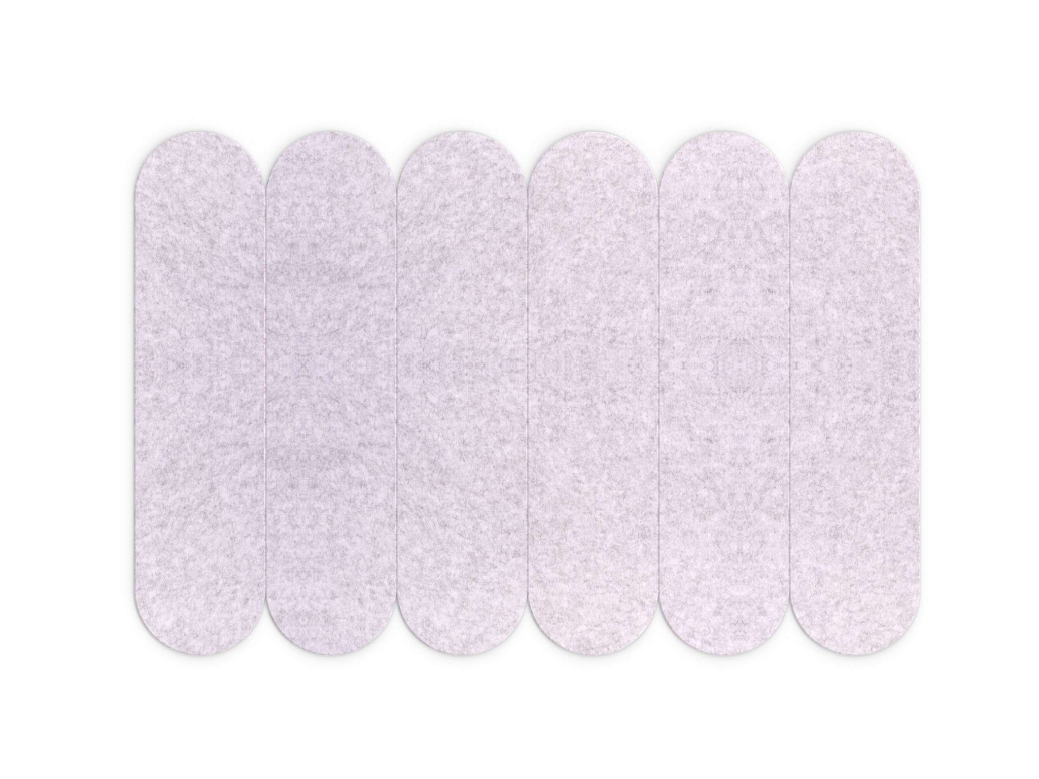 Met deze set van 6 PET-vilt stroken creëer je op een eenvoudige manier een betere akoestiek in een ruimte. De stroken absorberen geluid waardoor het effect van nagalm wordt verminderd. Maar ook op het gebied van esthetiek dragen ze bij aan de inrichting van de ruimte. De stroken zijn in een afgeronde vorm ontworpen.