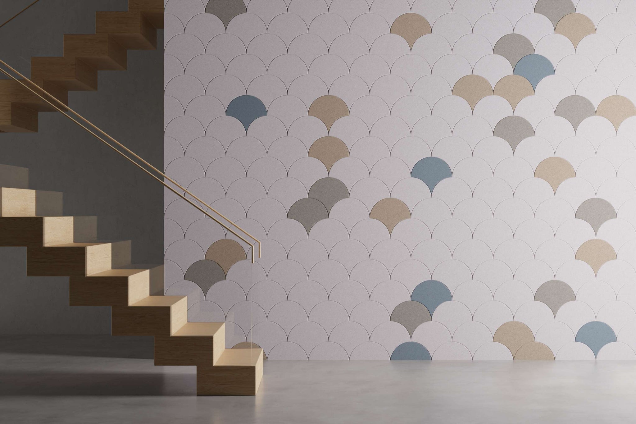 Akoestische wandbekleding bestaande uit 22 tegels in de vorm van Japanse golf. Het PET-vilt materiaal is gemaakt van gerecyclede PET-flessen en absorbeert hinderlijke nagalm en schelle geluiden. Daardoor ontstaat een fijne en rustige akoestiek in de ruimte.