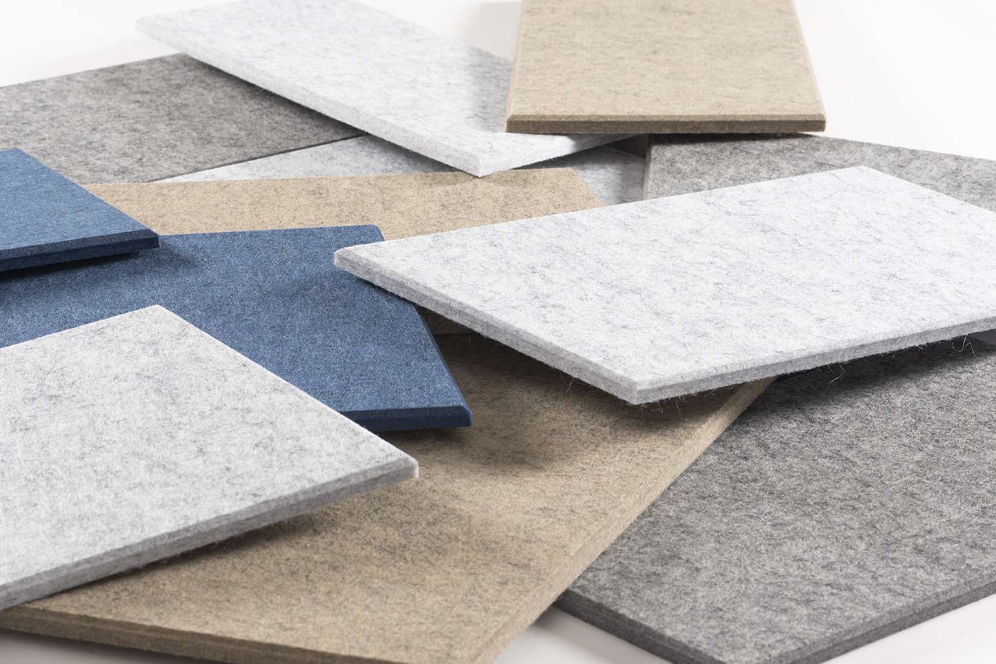 Akoestische wandbekleding bestaande uit 22 tegels in de vorm van een Parallellogram. Het PET-vilt materiaal is gemaakt van gerecyclede PET-flessen en absorbeert hinderlijke nagalm en schelle geluiden. Daardoor ontstaat een fijne en rustige akoestiek in de ruimte.