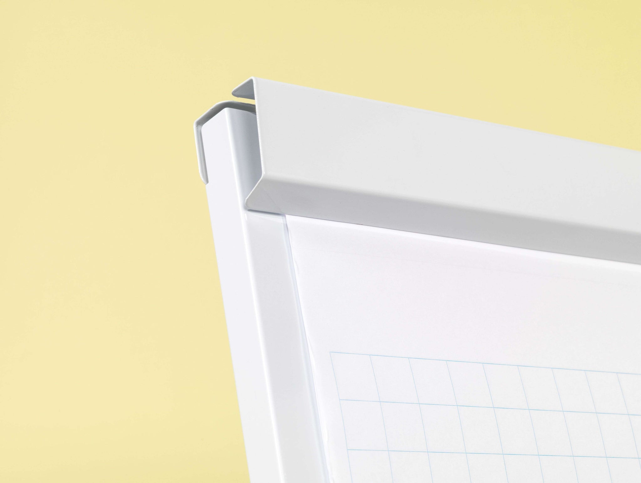Flip-over met snelklem en flexibele ophangpunten. Achterpaneel van gelakt staal. Voorzien van twee zijarmen voor meer ophangmogelijkheden, inschuifbare poten en afleggoot.