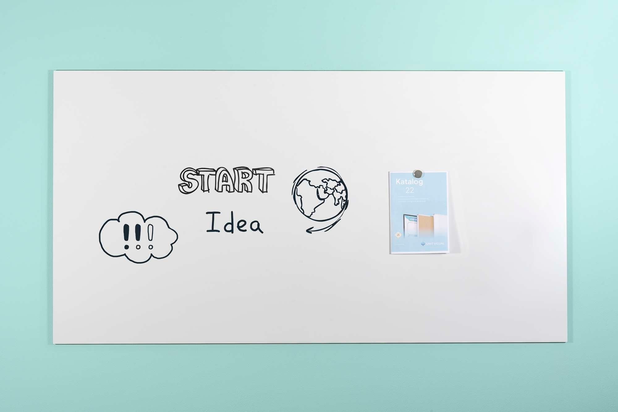 Dit oersterke whiteboard is slechts 4 mm dik, wat het ultrastrakke design aan de wand extra benadrukt. Tegelijkertijd is het materiaal stug en onbreekbaar. De zwarte zijkant geeft een fraai contrast met de witte voorzijde. De voorkant is voorzien van een gelakt stalen oppervlak van hoogwaardige kwaliteit. Je kunt er op schrijven met gewone whiteboard stiften en is makkelijk te wissen. Je kunt er ook magneten op hangen.
