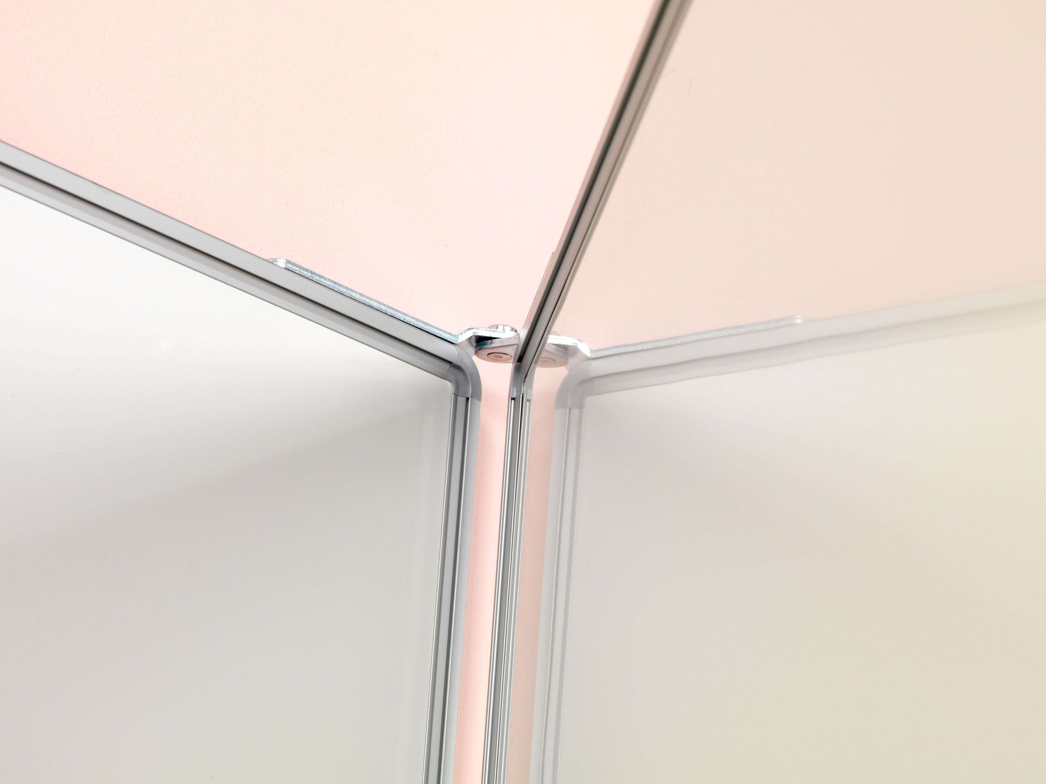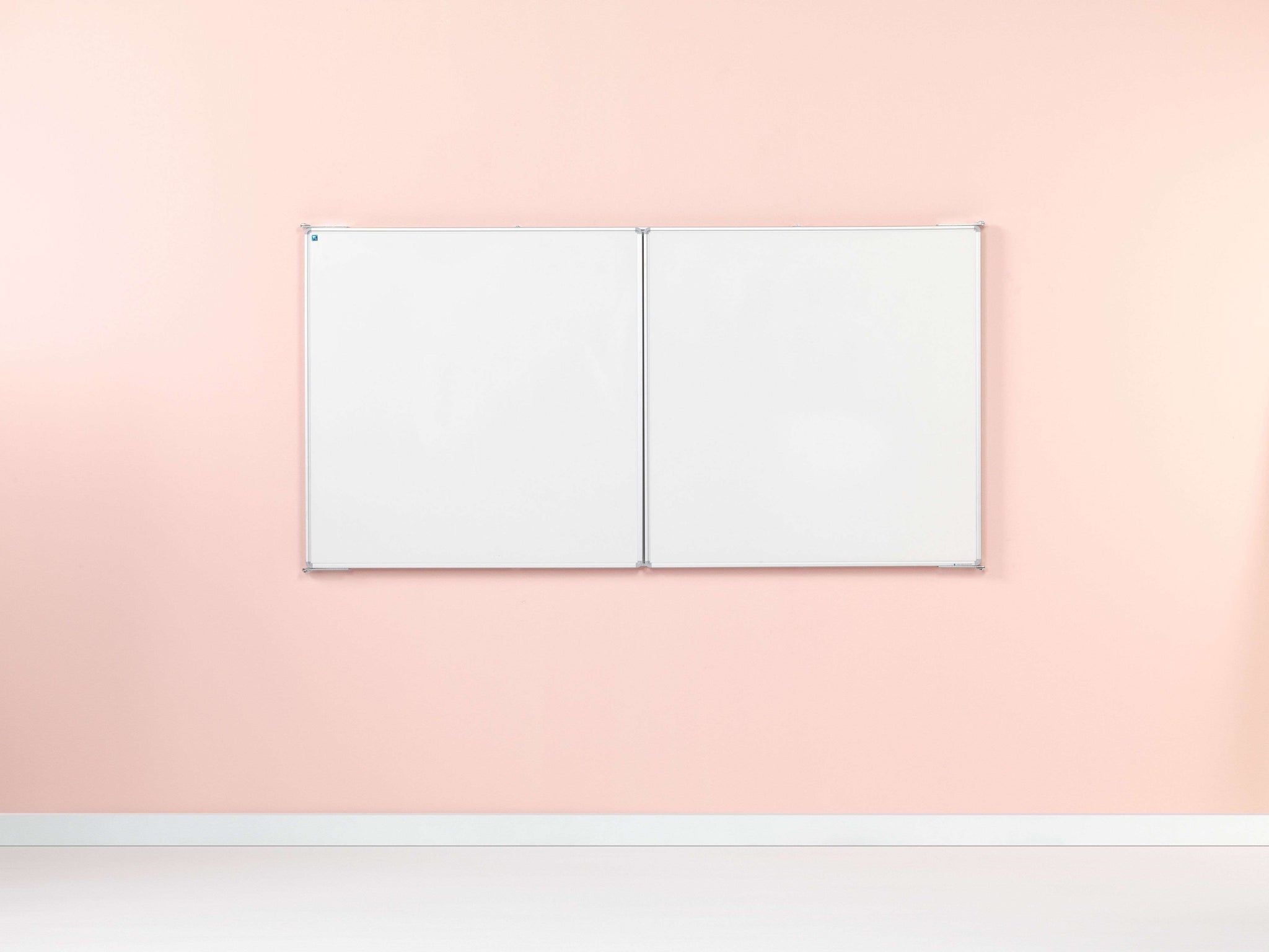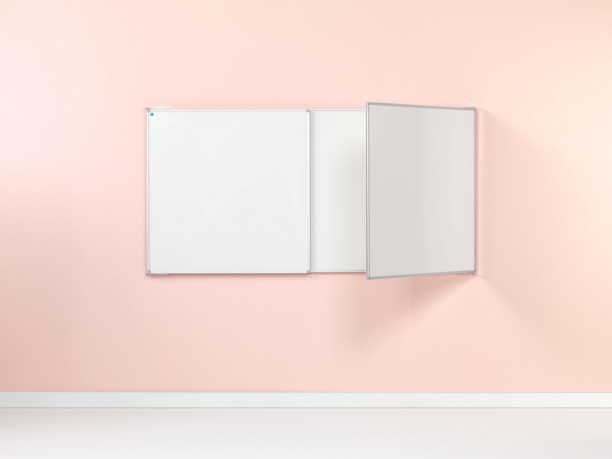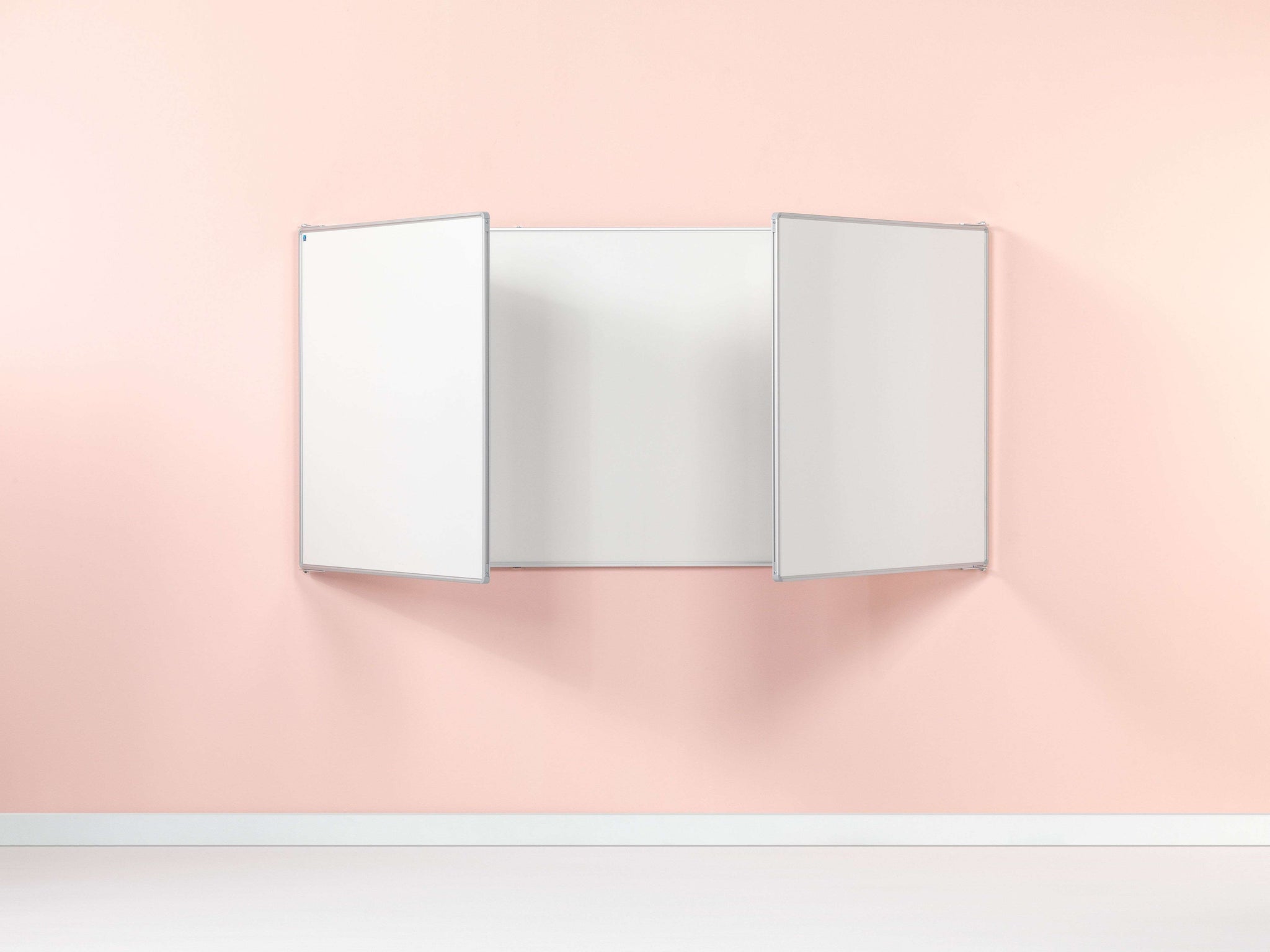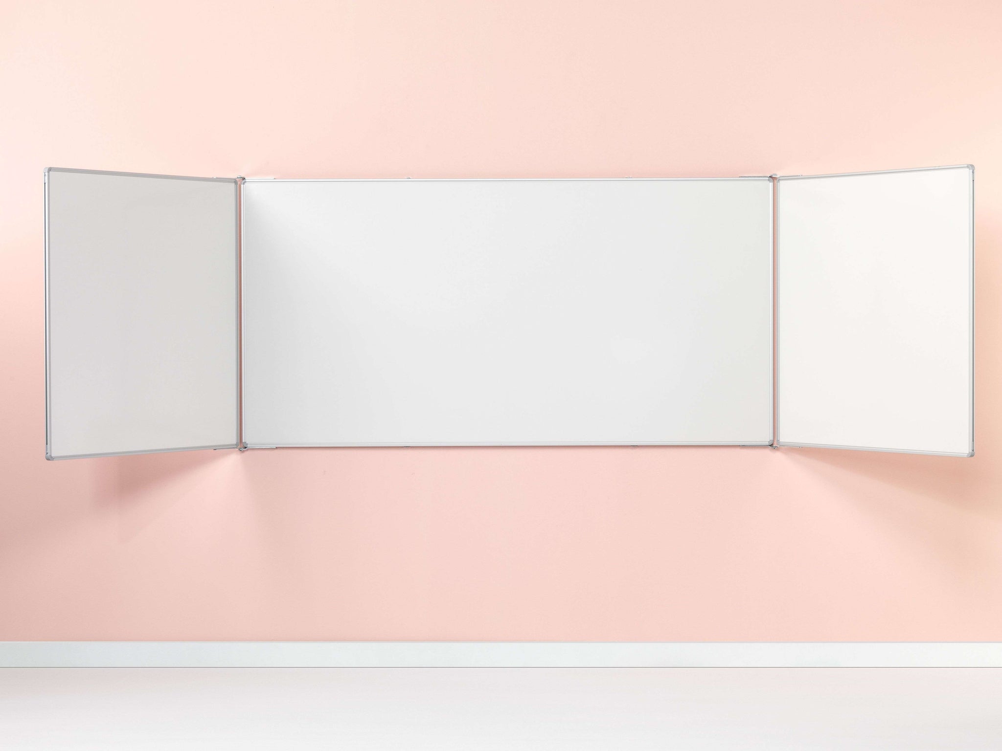 Whitebord met vijf schrijfvlakken van wit emailstaal (800ºC). Extra vleugels zorgen voor meer schrijfruimte. Geanodiseerd aluminium RC-profiel met grijze kunststof hoekstukken. Inclusief afleggoot.